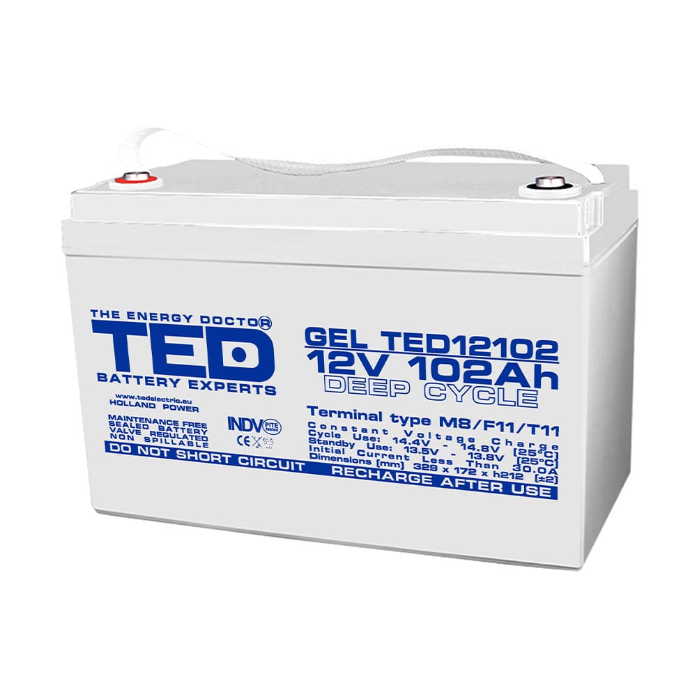 Specificații: Acumulator AGM TED Deep Cycle TED003492, 12 V, 102 Ah, M8