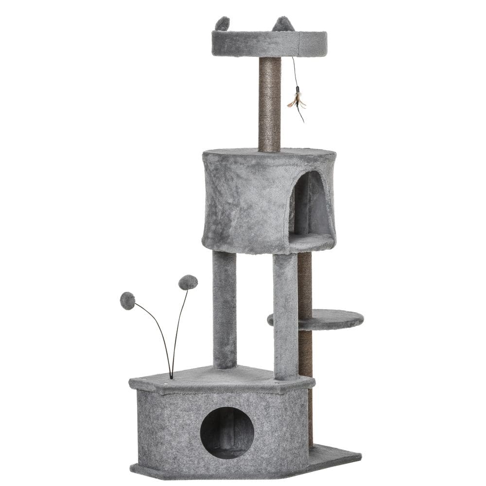 Arbore de zgariat pentru Pisici Adulte si Pisoi cu Culcus, Stalpi din Sisal si Husa din Plus si Pasla Gri, Inaltime 133 cm PawHut | Aosom RO