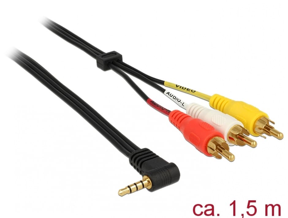 Specificații: Cablu Stereo jack 3.5 mm 4 pini la 3 x RCA T-T 1.5m, Delock 84504