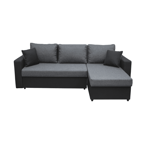 Specificații: Coltar NICOLE extensibil, cu lada depozitare, colt interschimbabil, negru + gri, 225x145x82 cm