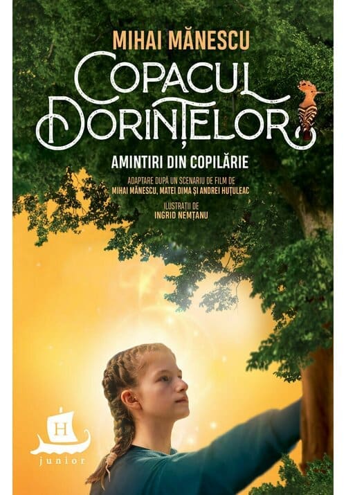 Ilustratii de Ingrid Nemtanu Romanul Copacul dorintelor. Amintiri din copilarie s a nascut din scenariul filmului omonim regizat de Andrei Hutuleac, avandu i in distributie pe Maya Noelle Prediger, Teodor Corban, Matei Dima, Grigore Silisteanu si Micutzu Cosmin Nedelcu. Adaptare dupa un scenariu de film de Mihai Manescu, Matei Dima si Andrei Hutuleac • Ilustratii de Ingrid Nemtanu La prima vedere, Mara e o fata ca oricare: are 12 ani, e inteligenta, introspectiva si ironica, ii plac literatura, filmele si ciocolata alba cu alune. Cu toate acestea, incercarile prin care trece ii dau o perspectiva asupra lucrurilor care i depaseste numarul anilor si o putere de a lupta pe care o au doar invingatorii. Intr un moment de cotitura, cand are nevoie de ingrijiri medicale, Mara ajunge intr un centru de specialitate, unde descopera un portal care o transporta in universul Amintirilor lui Creanga, cartea ei preferata. In Humulestiul vesel si luminos al secolului al XIX lea, fata se imprieteneste cu Nica, pe care il surprinde in ciresul matusii Marioara, il ajuta sa fure pupaza din tei si il scapa de mania parintilor si rubedeniilor. Ba mai mult, cei doi copii fac cunostinta cu niste negustori ambulanti cu infatisare bizara, marfa suspecta si intentii necurate, pe care i trag pe sfoara cu ingeniozitate. Dar copacul din titlu? Ei bine, e un copac magic, care indeplineste dorintele copiilor si creeaza punti intre lumi. Pe coperta: prelucrare dupa afisul filmului Copacul dorintelor. Amintiri din copilarie, realizat de Alina Nechita Carte scrisa in beneficiul Logo HOSPICE Alte carti aparute la Editura Humanitas: Marea aventura a micii albine Mitsu Aventurile lui Habarnam si ale prietenilor sai Lumea povestilor lui Shakespeare