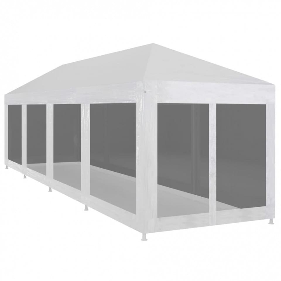 Cortul nostru pentru petrecere cu pereți laterali din plasă este ideal pentru oricine preferă să stea în grădină, dar nu vrea să fie deranjat de insecte în timpul activităților în aer liber. Acest cort pentru petrecere este potrivit pentru o gamă largă de evenimente în aer liber, cum ar fi spectacole, nunți, petreceri, grătare, festivaluri și altele. Fabricat din oțel foarte rezistent, vopsit electrostatic, acest cort pentru petrecere este extrem de durabil. Acoperișul este fabricat din polietilenă de calitate superioară, ceea ce îl face rezistent la apă și UV. Cortul are zece pereți laterali din plasă, care vă protejează de insectele nesuferite. Doi dintre pereții laterali sunt prevăzuți cu intrare cu fermoar pentru acces ușor. Cortul este ușor de instalat cu accesoriile de montare incluse. NOTĂ: Acest produs nu trebuie folosit NICIODATĂ în condiții de vreme rea, precum vânt puternic, ploaie abundentă, zăpadă, furtună etc. Culoare: Alb și negru Material acoperiș: Polietilenă Material perete lateral: Poliester 100% Material cadru: Oțel vopsit electrostatic Dimensiuni: 12 x 3 x 2,55 m (L x l x î) Înălțime de la sol la streașină: 2 m Rezistent la apă și la raze UV 10 pereți laterali cu plasă, dintre care doi au intrare cu fermoar Pachetul de livrare include accesoriile de montare.