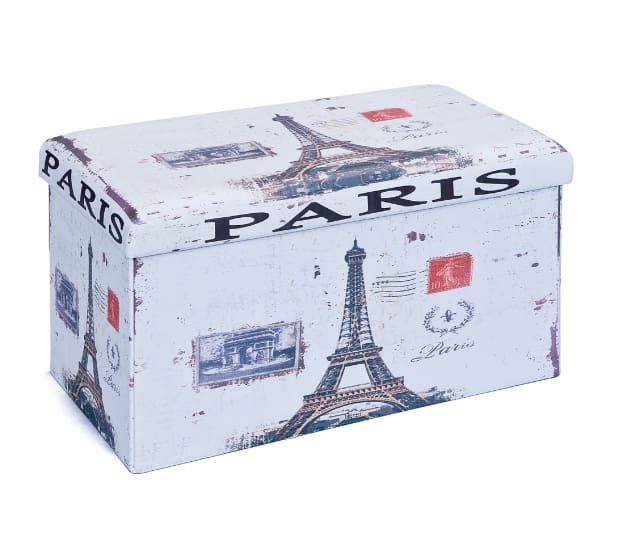 Taburet Cutie Depozitare Paris Taburetul cutie este practic si decorativ in acelasi timp, fiind ideal pentru depozitarea obiectelor pe care le doresti la indemana dar nu la vedere! In plus, este un scaun comod, capacul fiind captusit cu burete! Este tapitat cu imitatie de piele. Decorat cu motive urbane, da un aspect inedit livingului sau oricarui alt spatiu din casa ta! Caracteristici generale: – Fiind pliabil, este usor de transportat oriunde ai nevoie de el! – Dimensiuni: 47 x 29 x 32 cm – Greutate suportata 100 kg *Imaginile, culorile si caracteristicile descrise au caracter informativ și pot contine mici inadvertente sau diferi ocazional fața de produsele prezentate pe site. Echipa GAVE.RO”