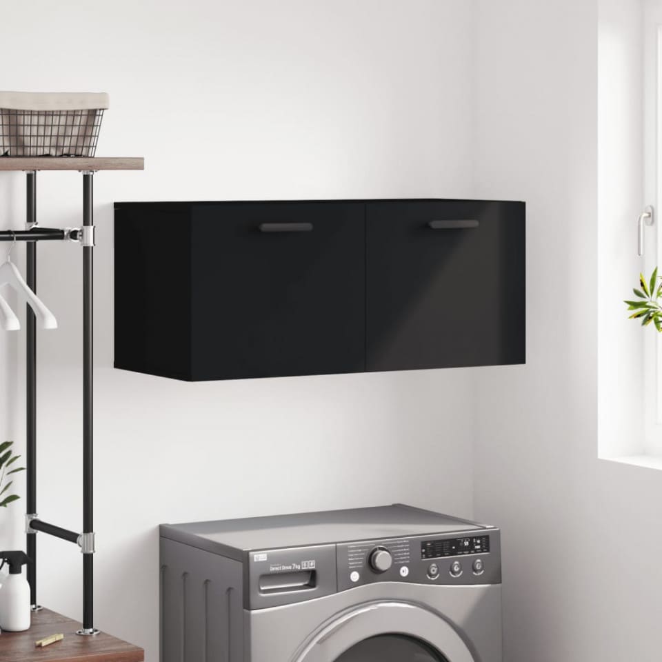 Dulap de perete, negru, 80×36,5×35 cm, lemn compozit
