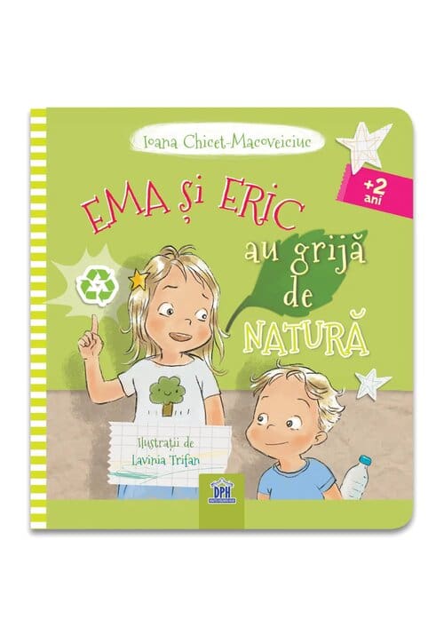 In aceasta carte pentru copii micuti, fratii Ema si Eric descopera impreuna cat de mult rau putem face naturii daca nu suntem atenti, dar si ce poate face fiecare dintre noi, oricat de mic ar fi, pentru a proteja planeta de poluare. Eric invata de la Ema sapte lucruri simple, dar foarte importante, despre reciclare, economisire si curatenie! Aveti aici o poveste simpatica din care copiii pot invata atat de multe! Ioana Chicet-Macoveiciuc este fost jurnalist, in prezent scriitor de carte si de blog si organizator de evenimente pentru parinti. Are peste 15 ani de experienta in presa scrisa, project management si comunicare on-line. Scrie pe www.printesaurbana.ro subiecte despre viata de familie, stiluri sanatoase de viata, despre dezvoltarea de sine si cresterea copiilor cu respect si blandete. In iunie 2016 a lansat prima carte pentru copii, Te iubesc, orice ai face, care a inregistrat peste 10 000 de exemplare vandute in primele doua luni. Au urmat alte carti de succes, precum: Vacanta Pofticiosilor, Mami, e gata?, Impreuna, Craciunul perfect al Emei, Baietelul cu aripa de fluture, CuMinte de Craciun, Te rog, multumesc, te iubesc, Prima zi de scoala a Mirei, Cand ma fac mare, Jocul meseriilor – 26 de jetoane – Ema si Eric, Ema si Eric invata bunele maniere – puzzle gigant, plansa Meserii cu Ema si Eric, Coloram cu Ema si Eric, Ce, cum si de ce simt, Creeaza povesti cu Ema si Eric – Aventuri in oras, Coloram cu Ema si Eric, Ema spune pofta buna, Aventura Pofticiosilor, Activitati de Craciun cu Ema si Eric, Vraja ecranelor – Ema si Eric regasesc placul de joc, Labirinturi cu Ema si Eric. Lavinia Trifan, ilustrator si autor al aventurilor micului Catel de Usturoi din cartea Poftiti la Bal si al jocului Poftiti la joaca!, citea o multime de povesti in copilarie, iar aventura sa ca autor a inceput devreme, in studentie. Este autor si ilustrator al cartii de colorat In lumea fructelor si a legumelor cu Micul Catel de Usturoi. De asemenea, Lavinia Trifan a dat viata personajelor Ema si Eric din seria autoarei Ioana Chicet-Macoveiciuc.