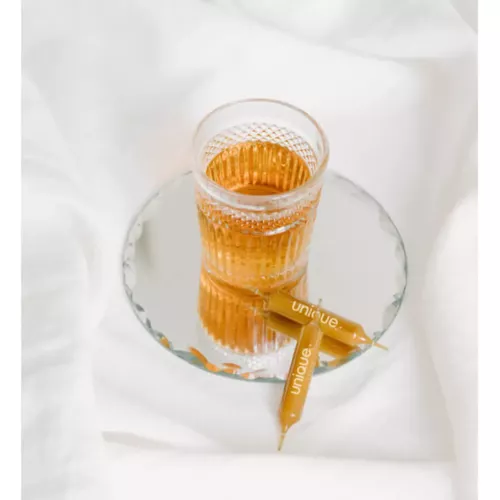 Schimbarea anotimpului rimează în general cu un ton mai scăzut și un corp vulnerabil. Pentru a evita curgerea nasului și durerile de gât este esențial să ai un sistem imunitar solid. Știați că hidratarea adecvată întărește și sistemul imunitar? Fiolele hidratante reunesc toate ingredientele active necesare pentru a ne stimula sistemul imunitar, folosind apa ca vehicul de transport către celulele corpului nostru. Un adevărat scut de protecție împotriva agresiunilor externe! Ingrediente Deshidratarea este unul dintre declanșatorii slăbirii sistemului nostru imunitar, motiv pentru care apa se află în centrul tuturor formulelor noastre de rehidratare din interior. Ingredientele alese ale stupului, cum ar fi: lăptișorul de matcă și propolisul, susțin în mod natural imunitatea Iar selecția noastră de plante adaptogene: echinacea, ginseng, shiitake vor da un adevărat impuls organismului Observația noastră: bunicile noastre aveau dreptate, lăptișorul de matcă face minuni! Ingrediente pentru o fiolă hidratantă (fiolă de 10 mg): extract de rizom de ghimbir 2,5 g sirop de agave extract apos din părți aeriene înflorite și rădăcină de echinaceea violetă 1,99 apă purificată lăptișor de matcă 800 mg suc concentrat de portocale suc de bergamotă extract de hidroglicerină propolis 100 mg extract organic de ciuperci shiitake 30% poliaharide uscate 100 mg aromă naturală de portocale extract uscat de rădăcină de eleuterococ 37,5 mg extract uscat de ginseng 20 mg Mod de utilizare Luați dimineața o fiolă diluată într-un pahar mare cu apă. Acest pas al rutinei tale este ca o bombă de ingrediente active pentru a-ți începe ziua cu bine: primești 70% din ingredientele active prezente în cura ta hidratantă. Obiectiv Un maximum de ingrediente active pentru un maximum de efecte. Evident, păstrează obiceiurile bune… MĂNÂNCĂ (bine) DORMI (bine) Ai grijă de intestinul tău prin alegerea zilnică de produsele proaspete, sănătoase, fără prea mult zahăr, fără prea multă grăsime, fără prea mult gluten. Încearcă să variezi cât mai mult mesele, fără prea multe constrângeri. Este important să te distrezi! Somnul este esențial pentru echilibrul tău! Închide telefonul! Crează momente speciale în zilele tale, departe de telefon. Încearcă să faci mișcare. Mișcă-te! Nu este nimic mai bun decât exercițiile fizice și puțină transpirație pentru a vă umple cu endorfine. Redu negativitatea. Fii înconjurat de oameni pozitivi și grijulii care te susțin. …ȘI FII FERICIT! Timpul este, fără îndoială, bunul nostru cel mai de preț, să ne gândim să-l salvăm pentru a face lucruri care ne fac cu adevărat fericiți. REPETĂ cele de mai sus! Cură pentru 30 de zile Pachetul conține: 30 fiole x 10ml Volum total: 300 ml Producător Unique Paris
