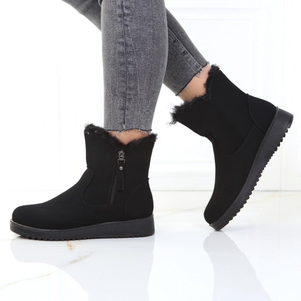 Ghete din piele ecologica matifiata, cu interior imblanit si talpa usoara si antiderapanta