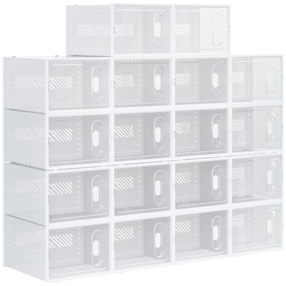 Specificații: HOMCOM Dulap pentru pantofi modular cu orificii de ventilatie, 18 cuburi 28x36x21cm din plastic PP, alb si transparent | AOSOM RO