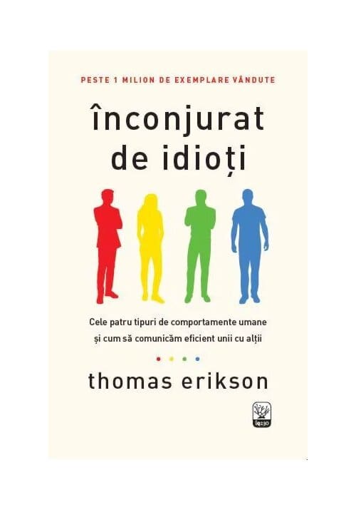 B e stseller international. Peste 1 milion de exemplare vandute „Un ghid util de comunicare cu cei cu care nu putem comunica… scris clar, dinamic si usor de inteles.“ Publisher’s Weekly Cu totii am dat peste idioti cel putin o data in viata – oameni enervanti pe care nu ii putem intelege indiferent ce am face sau ce am zice. Dar adesea acesti asa-zisi „idioti“ sunt doar oameni care gandesc si comunica altfel decat noi. Inconjurat de idioti curata campul minat al comunicarii interpersonale, folosind patru profiluri comportamentale: ROSU Curajosi si impulsivi, Rosii sunt lideri innascuti, cu teluri ambitioase GALBEN Adevarati fluturasi sociali, Galbenii sunt creativi si optimisti VERDE Cei mai altruisti dintre toti, Verzii sunt relaxati, prietenosi si loiali ALBASTRU Avand o minte alerta, Albastrii sunt analitici si orientati spre detalii Incluzand ponturi despre cum sa interactionezi cu fiecare culoare – de la cum sa oferi feedback, la cum sa scrii un e-mail – acest sistem simplu va schimba modul in care comunici cu cei din preajma ta. Din aceeasi colectie au mai aparut la Editura Litera si urmatoarele carti: Inconjurat de psihopati Psihologia prostiei