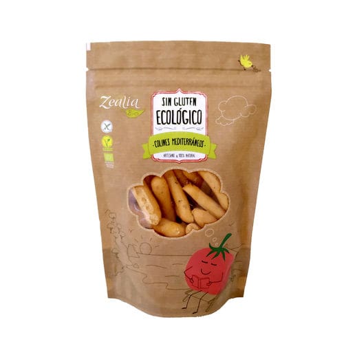 Minigrisine artizanale cu maia, cu ulei de masline virgin, fara grasimi de palmier, fara coloranti, fara conservanti, fara zahar rafinat. Ingrediente: amidon de porumb*, rosii*, ulei de masline virgin* (4%), sirop de orez*, maia de hrisca* si quinoa* (2%), ceapa*, oregano*, guma xantan, faina de guar, drojdie, sare, extract de rozmarin*. *=certificat ecologic. Poate contine urme de susan. Declaratie nutritionala (valori medii pt. 100 g produs): val. energetica 1438kJ/ 344 kcal; grasime 5.9 g din care acizi grasi saturati 1.9 g; glucide 68 g din care zaharuri 1.9 g; fibre 2.9 g; proteine 3.2 g; sare 2 g.