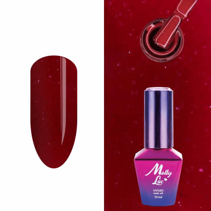 Oja Semipermanenta Molly Lac este tot ce ai nevoie pentru a realiza o manichuira superba cu minim efort! Oja Semipermanenta Molly Lac se poate utiliza cu usurinta in salon profesional sau chiar la tine acasa! Oja Semipermanenta Molly Lac din magazinul Nails Up poate ramane lucioasa si impecabila pe unghiile tale sau ale clientelor pana la 4 saptamani! Iata si pasii care trebuie urmati pentru realizarea manichiurii cu oja semipermanenta: 1. Se imping cuticulele sau se taie dupa caz; 2. Se matuiesc unghiile cu un buffer pentru a elimina grasimea unghiei si luciul natural al acesteia; 3. Se degreseaza unghiile pentru eliminarea prafului rezultat in urma matuirii; 4. Se aplica baza (primer, base gel) si se usuca in lampa UV timp de 1-2 min; 5. Se aplica primul strat de oja, fara a atinge cuticula si se usuca la lampa UV 2 min; 6. Daca se doreste obtinerea unei nuante mai intense se aplica un al doilea strat si se usuca din nou 2 min la lampa UV; 7. Pentru pastrarea unui luciu puternic se aplica un strat de top coat care se usuca 2 min in lampa UV; 8. Se degreseaza unghia pentru eliminarea stratului lipicios si se maseaza cuticula cu un ulei hidratant.