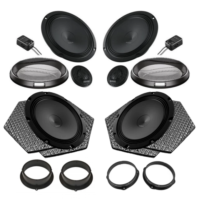 Pachet difuzoare auto Audison Prima dedicat Audi Q5 2008-2016 Acest pachet a fost special conceput pentru a se integra cu ușurință în locul difuzoarelor OEM. Realizează un sistem audio de maximă calitate și echilibrează sunetul din mașina ta, folosind doar produse premium, de la brand-uri recunoscute la nivel internațional. Pachetul contine: Difuzoare fata: AP8 – Recunoscute pentru performanta si fiabilitatea tehnologiei lor, difuzoarele auto Audison AP 8 sunt solutia perfecta pentru a simti din plin muzica din masina ta. Pentru vehiculele echipate cu un difuzoare de 200mm, departamentul tehnic Audison a dezvoltat AP 8, care datorită suprafeței mari de emisie, asigură o energie mai mare de frecvențe joase, asigurând o performanță excelentă. Setul contine 2 difuzoare. AP1 – Completează experiența acustică din mașina ta cu un sunet cald. Tweeterul AP 1 are o diafragmă cu diametrul de 26 mm, o lentilă acustică concepută pentru a compensa răspunsul în frecvență de: 10kHz – 13kHz, un magnet RED de neodynium și un crossover pasiv dedicat. Un set conține două tweetere. Difuzoare spate: APK 165 – Difuzoarele componente APK 165, pe două căi, sunt alcătuite din tweeterele AP1, 26mm, și mediile AP 6.5. Crossoverele au fost create pentru a asigura compatibilitatea OEM și pentru a elimina eventualele erori de conectare. Pentru un sunet de calitate si o senzatie exceptională, alege difuzoarele AUDISON APK 165. Setul conține: 2 difuzoare, 2 tweetere, 2 crossovere și 2 grile. Inele adaptoare – Cu ajutorul acestor inele adaptoare aveti posibilitatea de a inlocui difuzoarele originale cu unele after-market beneficiind in acelasi timp de un montaj foarte simplu a noilor difuzoare. Conector adaptor – pentru a schimba cablajul OEM din fabrica in conectorii pentru difuzoare. Adaptoarele pentru difuzoare vor fi necesare atunci cand inlocuiti difuzoarele originale cu altele aftermarket, prevenind nevoia taierii firelor originale in timpul inlocuirii difuzoarelor. Insonorizant pentru performanta acoustica – STP Crystal Insonorizantul auto STP CRYSTAL este un material multistrat compus din 3 straturi: 1) Un strat frontal din folie de aluminiu 2) Un strat de material cu rolul de absorbția sunetului 3) Un strat pe bază de cauciuc și polimeri acoperit cu un strat de hârtie anti-adezivă Lentila acustica este un hexagon multistratificat, pe baza penopoliurentană, care este impregnat cu bitum. STP Crystal este proiectata pentru imbunatatirea sunetului a difuzoarelor auto, si prevede 3 beneficii importante: – Amortizarea vibratiilor de la spatiul din interiorul usii – Absorbtia sunetului reflectat in interiorul usii – Suprimarea rezonantelor negative emise de perete din spatele difuzoarelor.