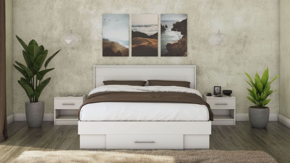 Alcătuit din 4 piese esențiale pentru un dormitor, mai exact 1 pat + 2 noptiere+ saltea, setul Beta oferă funcționalitate și un design deosebit, la preț accesibil. Cu o dimensiune de160x200 cm, patul este realizat din materiale rezistente și atent selecționate, astfel încât să te poți bucura din plin de confort și de momentele de relaxare. Patul conține și o ladă spațioasă, cu o lățime de 83 cm, ideală pentru depozitarea păturilor, fețelor de pernă sau cearșafurilor de pat. Noptierele cu design modern includ 2 spații pentru depozitare: unul deschis, potrivit pentru amenajarea unei mini-biblioteci(pentru iubitorii de cărți) și un spațiu închis, potrivit pentru stocarea micilor obiecte pe care dorești să le ai mereu la îndemână. Salteaua are 2 fețe și oferă echilibrul perfect între confortul și sprijinul necesar, menținând alinierea naturală a coloanei vertebrale și postura corectă a corpului, îmbunătățind semnificativ calitatea somnului. Albul nu are vârstă și reprezintă alegerea potrivită pentru amenajările moderne. Mobilierul alb creează contraste și umbre interesante, astfel că accentuează senzația de liniște și starea de confort. Laterale pat + Suport saltea = PAL cu grosimea de 18 mm. Dimensiuni pat: înălțime tăblie: 92 cm Înălțime: 34 cm Lungime: 204 cm Lățime: 164 cm Lățime sertar: 83 cm Adâncime sertar: 53 cm Dimensiuni noptieră : lățime 45 cm, înălțime 44 cm, adâncime 42 cm. Saltea Mrs Sleep cu arcuri, Dimensiuni: Înălțime: 17 cm; Lungime: 200 cm; Lățime: 160 cm Material exterior față: damasc Arcuri tip pocket 15 cm, grosime arc 2 mm, 242 arcuri / mp Informații utile: Pentru un transport sigur, produsul va fi livrat în pachete, neasamblat; Vine la pachet cu instrucțiuni și toate elementele necesare pentru finalizarea montajului; Salteaua este inclusă în preț; Dimensiuni saltea : 160×200 cm; Produsul conține suport pentru saltea.