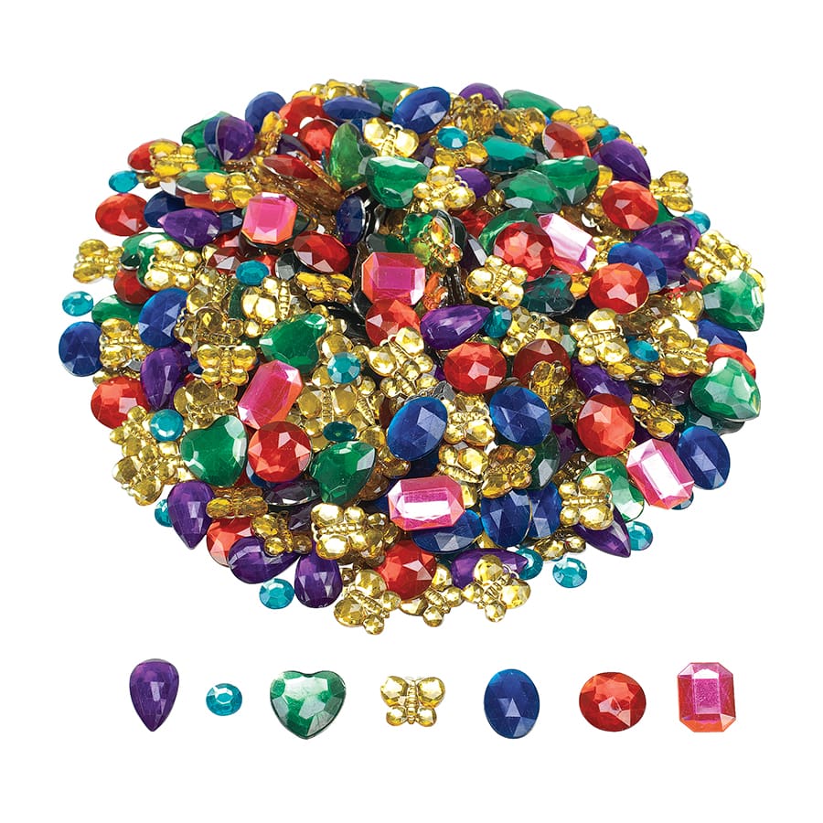 Adaugă o notă de strălucire operelor tale de artă cu aceste pietre colorate. Au diferite culori(violet, verde, auriu, albastru și roșu) și forme(lacrimă, inimioară, fluturaș, cerc și dreptunghi), ce pot fi lipite cu ușurință pe orice material.Pachetul conține 455 gr – 500 buc, cu dimensiunile de la 1,3 cm până la 2,5 cm.