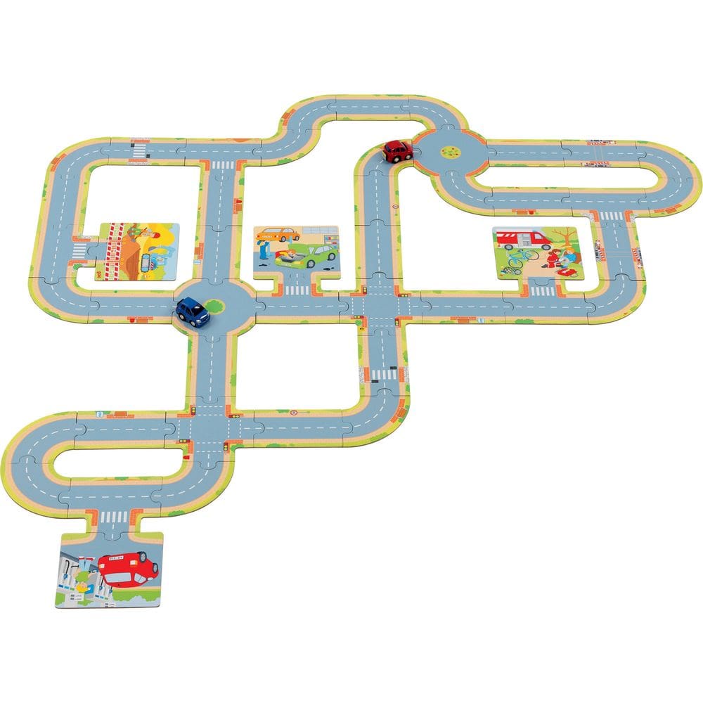 Jocul include 47 piese colorate din carton de calitate, cu ajutorul cărora îți poți crea propria pistă! Dimensiune: 14 cm.