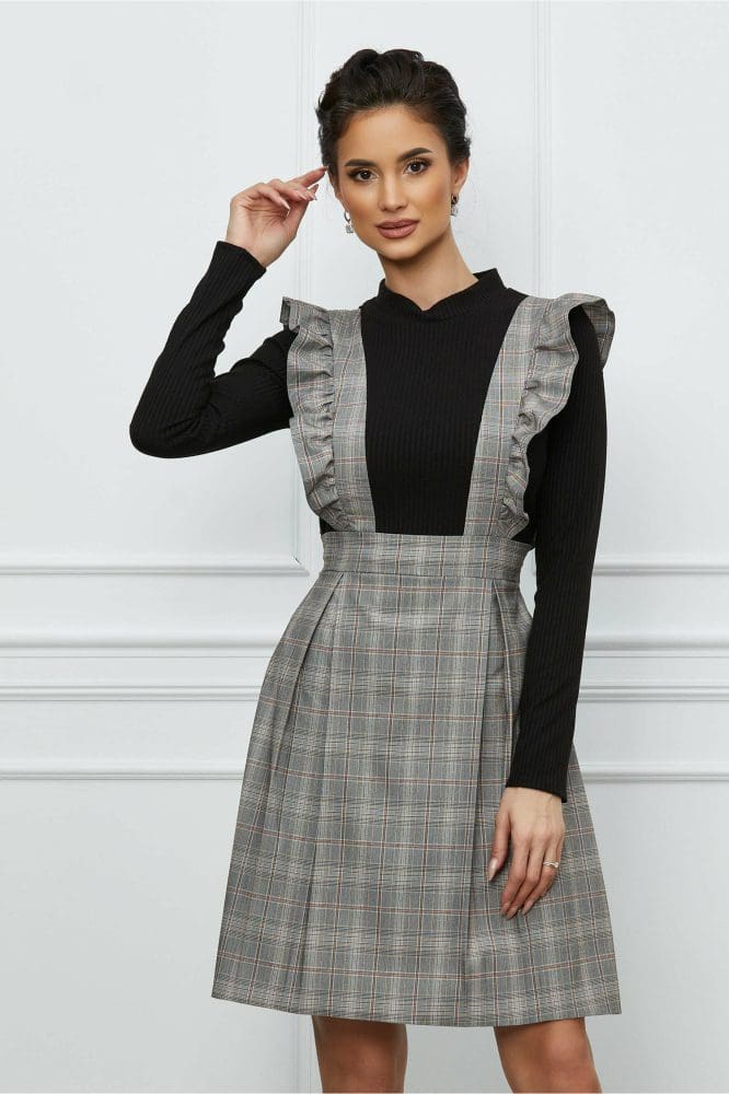 Rochie Moze gri cu carouri si bust negru tip sarafan