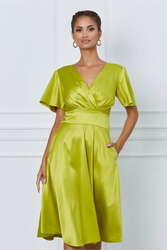 Specificații: Rochie Moze verde lime cu decolteu petrecut
