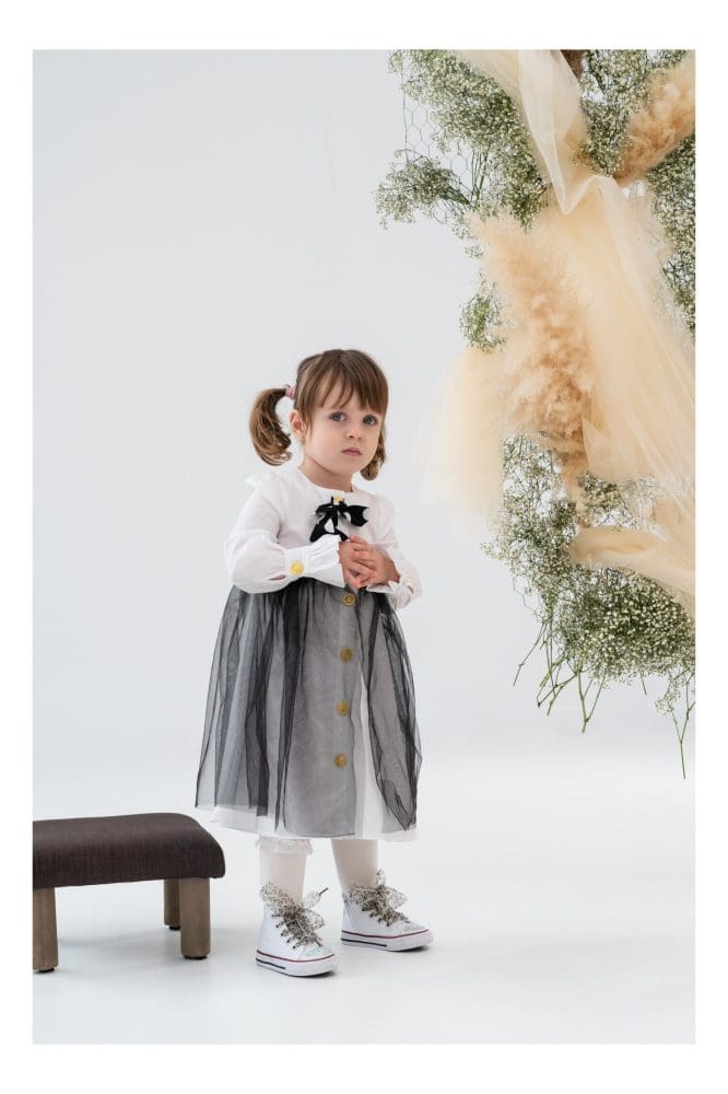 Specificații: Rochita pentru fetite Dy Fashion alba cu tull negru