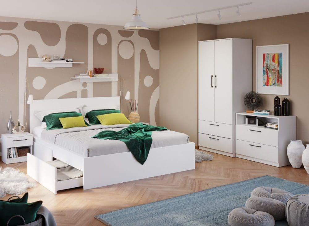 Set Dormitor Snow C06 Un dormitor matrimonial versatil ce doreste sa bifeze toate cerintele unui mobilier ideal. Set Dormitor Snow C06 are un aspect modern, combinand palul alb cu manerele negre, ce mentine linii drepte si clare in design. Dulapul are dimensiuni generoase, este spatios, iar inaltimea este conceputa cat sa incapa si in camere mai putin inalte sau in mansarde. Pe langa dulap, comoda, noptierele si patul ofera la randul lor spatii de depozitarea prin sertare . Deasemenea puteti alege seturi cu pat cu dimensiuni de 140, 160, 180×200. Aveti posibilitatea de a adauga doua sau patru lazi de depozitare. Corpuri Set Dormitor Snow C06 Dulap 83cm cu sertare – L 83 x A 48 x H 192.5cm – Schita Montaj Compartimentat cu 2 polite, bara umerase, 2 sertare (nu sunt prezentate sertarele in randarea de compartimentare dulap, insa sertarele sunt incluse ) Pat matrimonial – L 151.4, 171.4, 191.4 x A 211 x H 95cm – Schita Montaj Suport de saltea inclus. Sustine pana la 300kg. Set sertare/lada pat (optional) – L 103 x A 69.4 x H 28.7cm – Schita Montaj Poti alege 2 sau 4 sertare/lazi pentru depozitare Set noptiere – L 39 x A 30.4 x H 41.5cm – Schita Montaj Cu sertare si spatiu generos. Comoda – L 83 x A 42.3 x H 71.7cm – Schita Montaj Spatiu depozitare deschis si doua sertare. Set polite albe suspendate (optional) – L 92 x A 16.1 x H 14.5 cm – Schita Montaj Livrare Gratuita prin flota proprie Suntem producatori de mobilier Toate corpurile au o garantie de 2 ani Pat Alb Set Dormitor Snow C06 Se pot pune 2 sau 4 sertare de depozitare. Este rezistent cu sustinere in mai multe elemente: puncte de sprijin pe doua axe, 2 linii de sustinere pe lungime/laterale + 1 T central, L-uri metalice pe colturi Dimensiuni Pat Alb Latime: 151.4 cm sau 171.4 cm sau 191.4 cm (la alegere) Adancime: 211 cm Inaltime capat mare: 95 cm Inaltime capat mic: 36.8 cm Spatiu incadrament saltea: 7 cm (cat intra salteaua in cadru) Spatiu de la suport saltea la pardoseala: 30.5 cm Suportul de saltea din pal brut este inclus in pret. Saltea Compatibila 180×200 cm, 160×200 cm sau 140×200 cm in functie de dimensiunea de pat aleasa. Salteaua nu este inclusa! Bifati sus ca doriti. Alege 2 sau 4 lazi pentru depozitare Sporeste utilitatea patului prin lazile de depozitare. Reperul de jos este din pal de 16mm ce ofera o rezistenta sporita. Nu necesita fixarea pe cadrul patului, sunt pe roti si culiseaza sub pat iar frontul sertarului se opreste in laterala patului mascand spatiul de sub pat. Pot fi puse pana la 4 sertare. Dimensiune 1 sertar: 28.7 cm x 103 cm x 69.4 cm. Set Dormitor Snow C06 Face parte din familia de mobila pentru dormitor Snow . O solutie ideala pentru un dormitor matrimonial. Corpurile din Set Dormitor Snow C06 sunt realizate din PAL melaminat cu finisaj Alb care creeaza un spatiu rafinat si un ambient placut. Cantul aplicat este unul de 0,6 ce le permite muchiilor sa fie placute la atingere fiind finisate si atent retusate. Pretul afisat nu include alte accesorii sau obiecte de decor (tablouri, elemente de iluminat, asternuturi, covor etc.) Produsul se livreaza demontat si este insotit de accesorii si instructiuni de asamblare. Dimensiunile sunt exprimate in cm si pot oscila intre ± 10 mm.