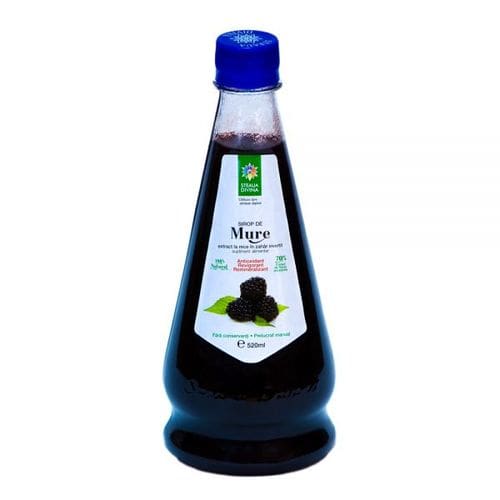 Sirop Natural de Mure Presat la Rece, 520ml | Steaua Divină Murele contin cantitati mari de beta-caroten acid salicilic pectina zaharuri compusi flavonici vitamine (A B1 B2 B5 B6 C E) si saruri minerale si oligoelemente intre care fier seleniu zinc magneziu potasiu si fosfor. Continutul scazut de calorii practic nu contin grasimi si concentratia mare de fibre si nutrienti le fac sa fie o alegere ideala in cazul unei diete sanatoase. Ingrediente: extract din mure (Rubus fruticosus ) 70% zahar invertit apa deionizata. 100% Natural Murele contin cantitati mari de beta-caroten acid salicilic pectina zaharuri compusi flavonici vitamine (A B1 B2 B5 B6 C E) si saruri minerale si oligoelemente intre care fier seleniu zinc magneziu potasiu si fosfor. Continutul mare de vitamine si minerale contribuie la imbunatatirea functiilor inimii si a functiilor cognitive. Continutul scazut de calorii practic nu contin grasimi si concentratia mare de fibre si nutrienti le fac sa fie o alegere ideala in cazul unei diete sanatoase. În acest sirop murele sunt macerate in zahar invertit la temperaturi sub 40gradeC tocmai pentru a fi pastrate toate substantele active pe care le contin. Produsul contine particule de mure in suspensie sau depuneri care nu constituie defecte de calitate. Modul de utilizare: cate 3 lingurite la un pahar cu apa de 3x/zi. Precautii la administrare: nu este cazul. Contraindicatii: diabet zaharat alergie la oricare dintre componentele produsului. Reactii adverse: daca apar manifestari neplacute adresati-va medicului sau farmacistului. Interactiuni medicamentoase: nu se cunosc. Produsul nu contine substante cu potential alergenic. Produsul este un supliment alimentar si nu trebuie sa inlocuiasca o dieta variata si echilibrata si un mod de viata sanatos. A nu se depasi doza recomandata pentru consumul zilnic. A nu se lasa la indemana si la vederea copiilor mici. A se agita inainte de utilizare. A se feri de lumina. A se pastra la temperaturi intre 10-25gradeC NOTĂ: Produsele prezentate pe site-ul www.viataverdeviu.ro sunt eficiente atunci când sunt integrate într-un stil de viaţă sănătos. Suplimentele alimentare nu pot înlocui o dieta echilibrată. Reţineţi că doar un stil de viaţă sănătos şi o dietă echilibrată asigură buna funcţionare a organismului. Rezultatele produselor nu sunt tipice, pot varia de la individ la individ şi pot depinde de stilul de viaţă al fiecăruia, de starea de sănătate, dar şi de alţi factori. Toate informaţiile prezentate pe site au rol informativ. Înainte de a achiziţiona suplimente alimentare, consultaţi sfatul medicului. Informațiile de pe acest site nu pot înlocui prescripţia medicală sau sfaturile medicului sau ale terapeutului dvs.