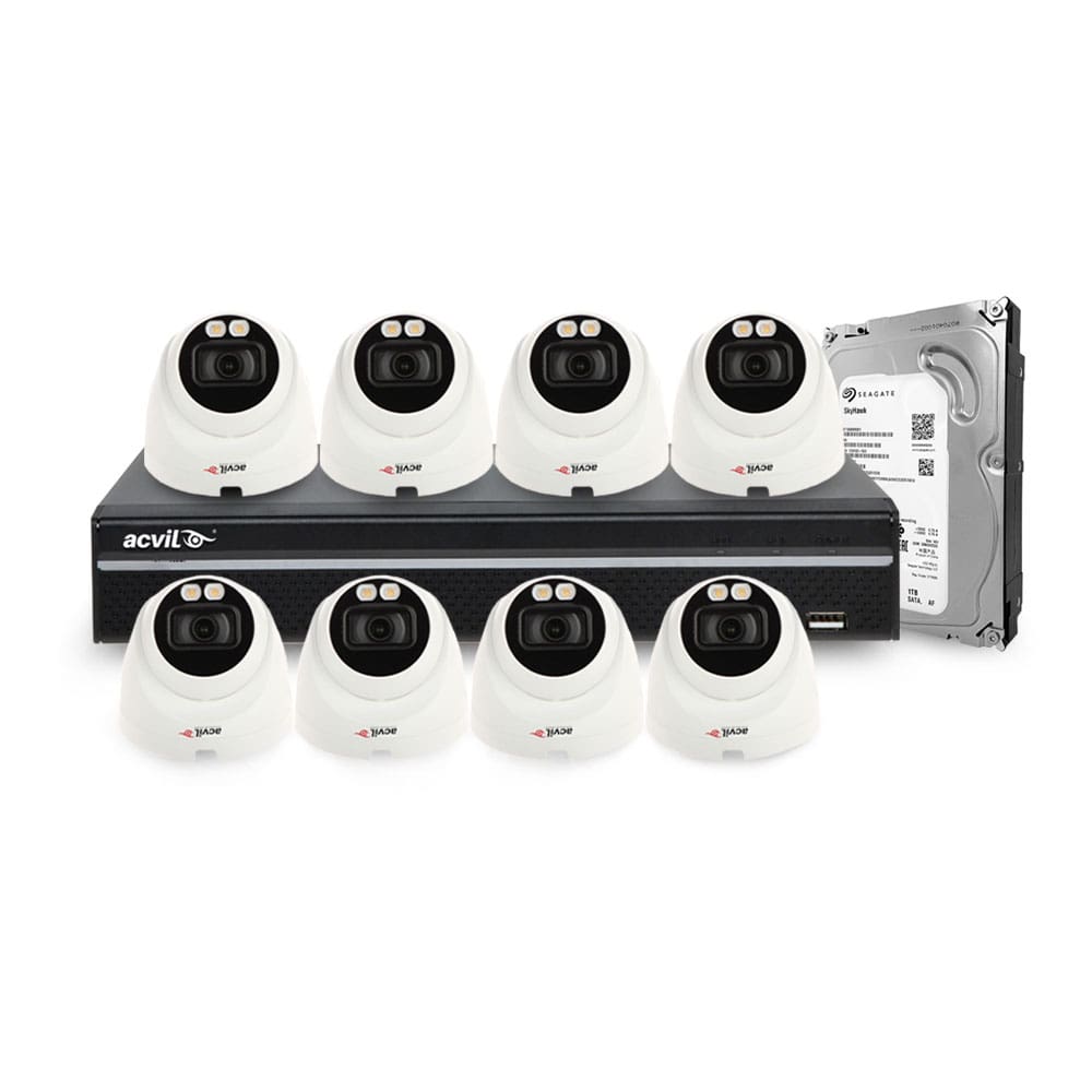 ACV-FC-M8INT30-4M-A-IP este un sistem de supraveghere basic IP pentru interior, de la Acvil. Acesta este format din 8x camere de supraveghere video Acvil Full Color ACV-IPDFC30-4M 2.0 (rezolutie 4 Megapixeli), lumina alba pentru vedere pe timp de noapte de pana la 30 metri, 1x NVR Acvil cu 8 canale video NVR2108HSP 2.0 si 1x HDD 1 TB ST1000VX001 menite sa iti protejeze casa sau afacerea. NVR2108HSP 2.0 este un Network video recorder (NVR) de la Acvil cu 8 canale PoE. Acesta inregistreaza cu o rezolutie de pana la 8 Megapixeli (4K) avand latimea de banda (intrare) de 80 Mbps. Rezolutia maxima de redare este de 4k (3840×2160 pixeli) prin HDMI, iar prin VGA de 2 MP (Full HD – 1920 x 1080 pixeli). Acesta se poate accesa direct de pe telefonul mobil iPhone sau Android (Aplicatia gDMSS Lite (android) sau iDMSS Lite (iOS). Functioneaza la temperaturi cuprinse intre -10 si +55 grade Celsius. Inregistrarile se pot face pe 1 HDD SATA (pana la 10 TB). Compresie video H.265 dubleaza rata de compresie a datelor comparativ cu H.264 sau MPEG-4 AVC pastrand acelasi nivel de calitate. Este compatibil cu numeroase dispozitive terte, facandu-l solutia perfecta pentru sistemele de supraveghere care functioneaza independent de sistemul de gestionare video (VMS). Dispune de o arhitectura deschisa care permite accesul a 128 de utilizatori si este compatibila cu protocolul ONVIF 2.4 care permite interoperabilitatea cu camere IP. ACV-IPDFC30-4M 2.0 este o camera de supraveghere Dome IP Full Color de la Acvil, echipata cu un senzor CMOS Progresiv de 1/3 inch, care ofera o rezolutie video de 4 megapixeli (UHD – 2688 x 1520 pixeli). Lentila fixa de 2.8 mm face posibil un unghi vizual de 96°, 51°, 115° (orizontala, verticala, diagonala) pentru monitorizarea si supravegherea obiectivelor. Tehnologia Full-color poate afisa imagini clare si colorate in mediul de iluminare ultra scazuta. Aceasta tehnologie de fotodensibilitate, camera poate capta mai multa lumina disponibila si afisa detalii mai colorate ale imaginii. BLC (Back Light Compensation) ajuta la vizualizarea detaliilor obiectelor intunecate, iar in acelasi timp poate filtra obiectele foarte luminoase. HLC (Highlight Compensation) este o functie creata din necesitatea de a reduce intensitatea luminiilor orbitoare la care o camera poate fi supusa (faruri, reflectoare etc). IVS este un algoritm analitic video integrat care oferă functii inteligente de monitorizare a unei zone, iar printre functii se enumara tripwire, detectarea intruziunilor si obiecte abandonate sau lipsa, avand un raspuns rapid si precis la monitorizarea evenimentelor dintr-o anumita zona. Cu tehnologia avansata Wide Dynamic Range (WDR), camera de retea Acvil ofera detalii clare intr-un mediu in care contrastul luminozitatii este puternic. Se pot obtine inregistrari clare chiar si in zonele luminoase sau intunecate. Cu senzor de inalta performanta si lentila cu diafragma mare. Inregistrarile se pot face si pe un SD card de max. 256 GB care nu este inclus in pachet. Gradul de protectie este garantat de standardul IP67, camera fiind rezistenta la praf, ploaie etc, iar carcasa este fabricata din metal+plastic. Alimentarea se va face la 12V DC sau PoE (802.3af), iar temperatura optima de functionare este cuprinsa in intervalul -40°C si +60°C. Majoritatea camerelor de supraveghere nu contin alimentator / sursa de alimentare. Acestea se achizitioneaza separat! La camerele cu slot pentru card de memorie, acesta se achizitioneaza separat! Cabluri video gata mufate se pot achizitiona separat in functie de distantele fiecarui obiectiv. Te rugam sa verifici aceste aspecte cu operatorii nostri! *Distanta DORI este calculata pe baza specificatiilor senzorului si rezultatul testelor de laborator conform EN-62676-4 care defineste criteriile pentru detectare, observare, recunoastere si identificare, simplificand alegerea camerei perfecte pentru nevoile tale. Distanta Detectie:56 m Observare:22.4 m Recunoastere:11.2 m Identificare:5.6 m Aplicatie compatibila Controlul nu a fost niciodata atat de usor! Cu ajutorul aplicatiei DMSS vizualiza de oriunde si oricand imaginile live direct de pe telefonul mobil iOS sau Android (disponibil pe Google Play si App Store). DMSS – Android Descarca aplicatia DMSS pentru Android apasand butonul „Descarca de pe Google Play” sau scanand codul QR direct cu telefonul iDMSS – iOS Descarca aplicatia iDMSS pentru iOS apasand butonul „Descarca de pe App Store” sau scanand codul QR direct cu telefonul