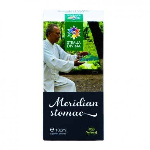 Tinctură Pentru Echilibrarea Meridianului Energetic Stomac, 100ml | Steaua Divină   Meridian Stomac extract hidroalcoolic din plante medicinale si aromatice conceput in conformitate cu principiile Medicinei Traditionale Chineze actioneaza asupra meridianului energetic Stomac precum o sui-generis “acupunctura cu pulberi de plante” si energizeaza intregul meridian activand toate punctele sale focar.   Compozitie: Angelica (Angelica archangelica) Cimbru-de-gradina (Satureja hortensis) Fenicul (Foeniculum vulgare) Ghimbir (Zingiber officinale) Lemn-dulce (Glycyrrhiza glabra) Maghiran (Majorana hortensis) Papadie (Taraxacum officinale) Roinita (Melissa officinalis) Salcam (Robinia pseudacacia) alcool etilic alimentar apa deionizata.   Indicatii: Se recomanda ca adjuvant in: lipsa poftei de mancare greturi varsaturi gastrita.   Actiuni: Digestiv gastroprotector carminativ antiemetic antiinflamator sedativ.   Precautii la administrare: Nu este cazul la dozele recomandate.   Contraindicatii: Alergie la oricare dintre componentele produsului.   Mod de administare: O jumatate de lingurita de 4 x/zi inainte de masa intr-o lingurita de miere de albine sau intr-un pahar cu apa.   NOTĂ: Produsele prezentate pe site-ul www.viataverdeviu.ro sunt eficiente atunci când sunt integrate într-un stil de viaţă sănătos. Suplimentele alimentare nu pot înlocui o dieta echilibrată. Reţineţi că doar un stil de viaţă sănătos şi o dietă echilibrată asigură buna funcţionare a organismului. Rezultatele produselor nu sunt tipice, pot varia de la individ la individ şi pot depinde de stilul de viaţă al fiecăruia, de starea de sănătate, dar şi de alţi factori. Toate informaţiile prezentate pe site au rol informativ. Înainte de a achiziţiona suplimente alimentare, consultaţi sfatul medicului. Informațiile de pe acest site nu pot înlocui prescripţia medicală sau sfaturile medicului sau ale terapeutului dvs.