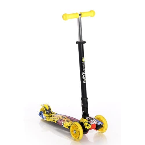 Trotineta usoara pentru copii SCOOTER RAPID are 4 roti pentru o stabilitate mai buna, care sunt echipate cu leduri care se coloreaza in diferite culori, cand se merge pe ea.