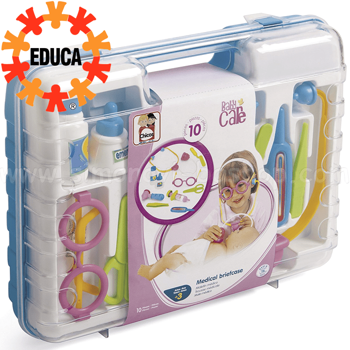Acum această trusă medicală fantastică poate fi a ta pentru a te juca cu prietenii tăi! Echipată cu 10 accesorii realizate din plastic de înaltă calitate ce-i conferă durabilitate ridicată în timp, această trusă stimulează imaginația și încurajează jocurile de rol, ajutând copilul să interpreteze noi personaje. Copilul va îndrăgi să intre în rolul unui doctor adevărat, având la dispoziție toate cele necesare pentru a-și trata și îngriji pacienții. Ochelari, foarfece, seringă, stetoscop, otoscop (dispozitiv pentru vizualizarea urechilor), termometru, pensetă și chiar două flacoane de medicamente pentru a putea vindeca pacientul. Cu această trusă practică din plastic dur, puteți lua totul cu voi fără să riscați să pierdeți ceva și să aveți grijă de bolnavi oriunde vă aflați. Dim. aprox. trusă: 34,5 lățime x, 26,5 cm înălțime x 9 adâncime.